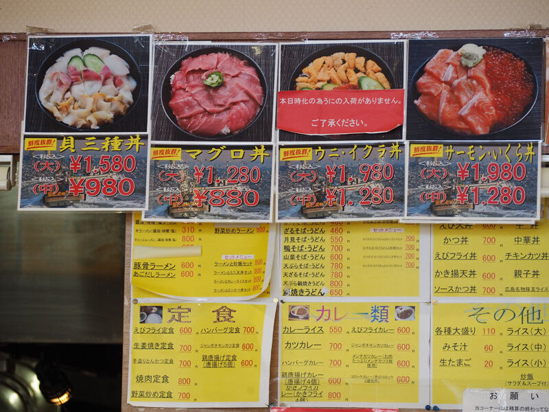 定食、カレー、ラーメン、海鮮丼など色々あります
