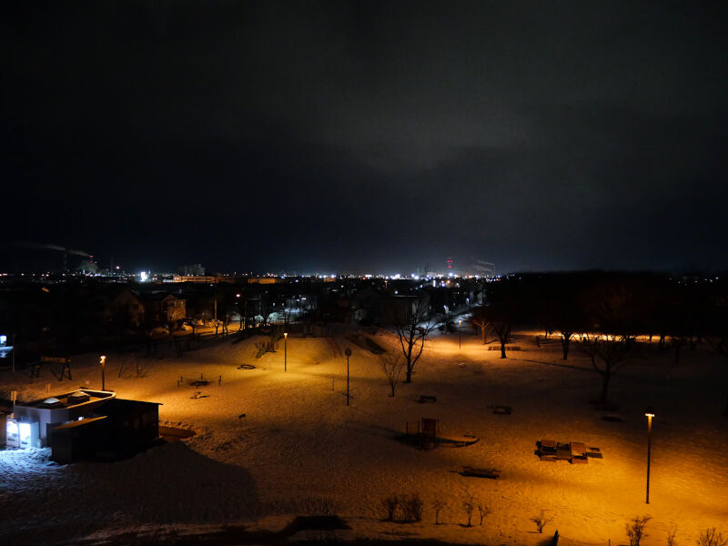 頂上にある展望台に上ると住宅街の明かりの向こう側に