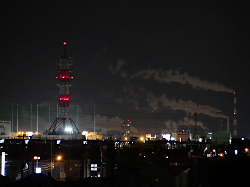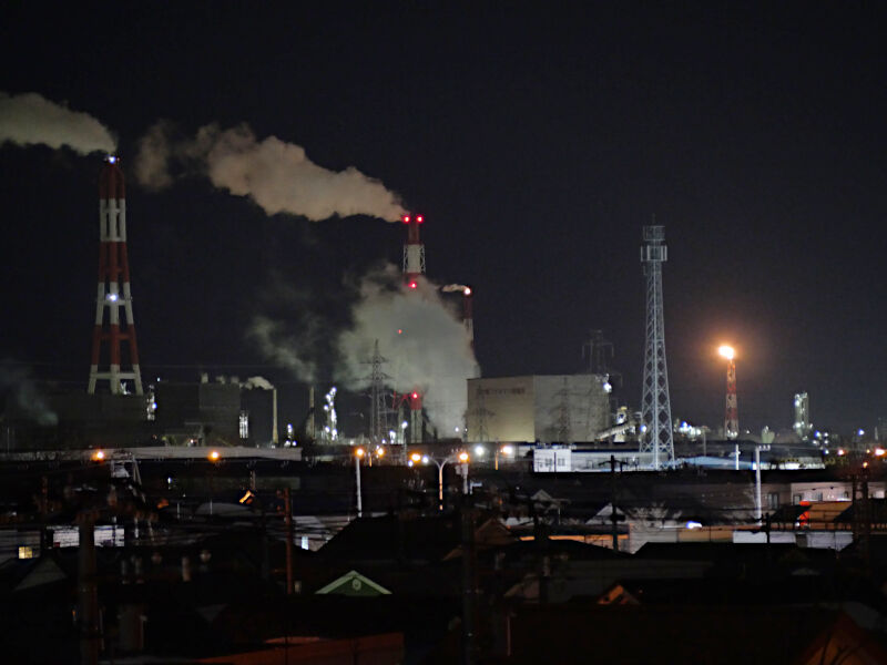 遠く離れている工場群の煙突でもここから綺麗に見えます