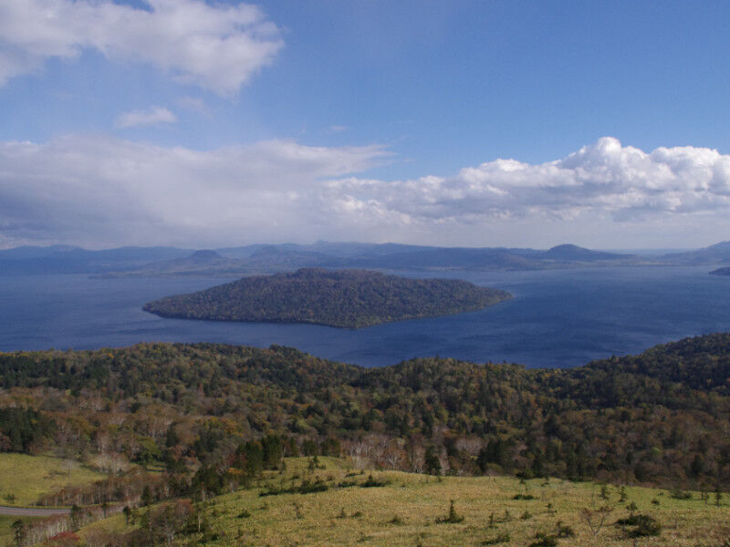 眼下には日本最大のカルデラ湖「屈斜路湖」のパノラマが広がり