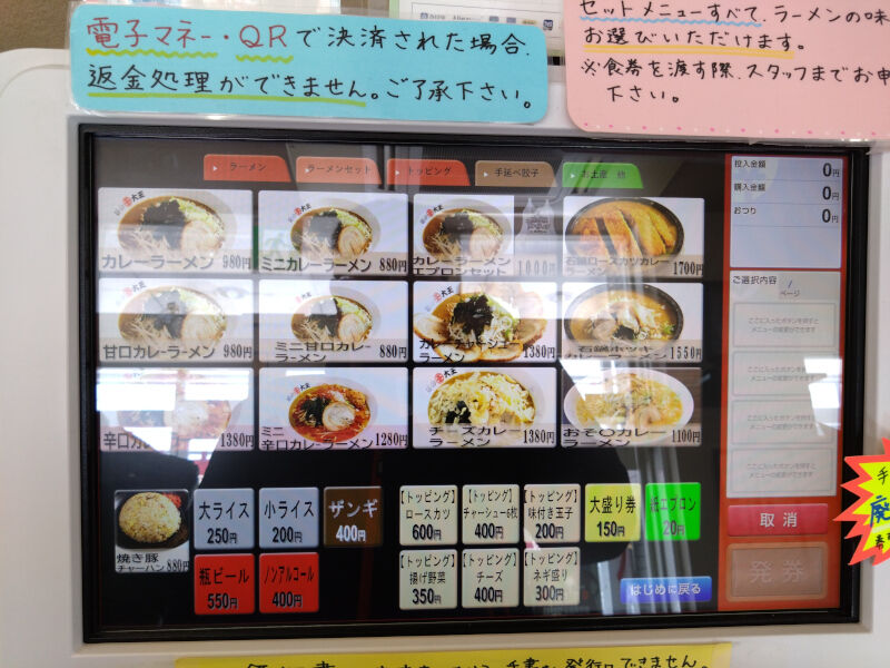 総本店はタッチパネルで食券を購入する先払いシステムです