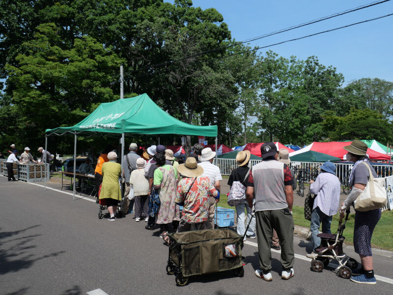 人が集まるのは朝のじゃがいも詰め放題、お昼ごろのタレントステージ