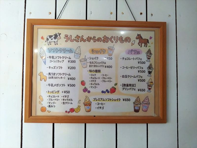メニューはソフトクリーム、シェイク、パフェの3種類