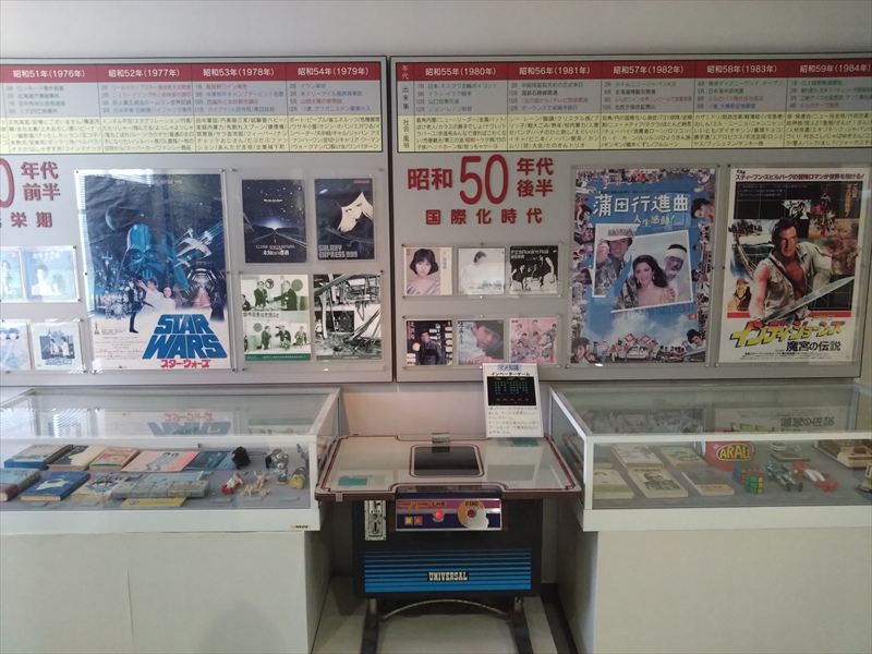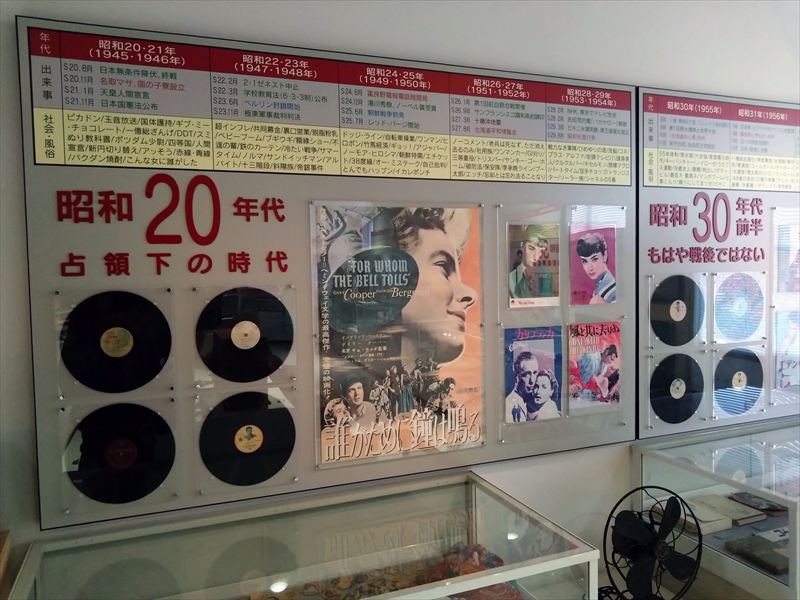 展示物には懐かしいポスター、生活用品、雑誌などが入っていました
